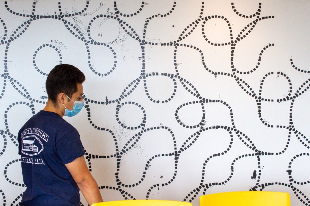 Beyond the end result of introducing pleasing wall graphics to the interior environment of a dormitory, the project also served as a practical way to teach pattern design, engaging students in both design and arrangement, and deepening their understanding of visual composition.